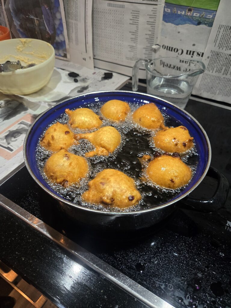 Als je vroeg poot kunt je ook op tijd rooien. Op 17 maart werden dit jaar de eerste aardappels gepoot en eind maart zaten alle aardappels in de grond. De laatste week april stonden de eerste planten er al boven. Het beloofde een goed groeiseizoen te worden. De droogte zorgde wel voor de nodige werkgelegenheid. Maar weinig vocht betekend ook vaak weinig schimmel. En om Phytophthora met het huidige middelenpakket onder de duim te houden valt niet meer. Het droge en koude voorjaar had wel een negatief effect op de knolzetting. Vandaar dat de eerste pootaardappelen al vroeg aan de maat waren. Op 6 juli werd het eerst perceel pootaardappelen geklapt. Op 11 augustus werden de eerste poters gerooid. De opbrengsten waren redelijk, maar niet zoals voorgaande jaren. De oogst verliep dankzij het droge weer vlot. Derde week september werden de eerste zetmeelaardappels geoogst. Het ras Seresta werd direct “af land” geleverd. Helaas was dit perceel eind augustus al volledig afgestorven. Toch kwam de opbrengst op 47 ton met een zetmeelpercentage van 20 procent. Eind september zijn we begonnen met inschuren van de laatste zetmeelaardappels. De opbrengsten zijn bijzonder hoog. Het ras BMC komt uit op ruim 55 ton per ha met een zetmeelpercentage van 23 procent. Op 2 oktobeer was de schuur weer goed gevuld, een bijzonder goede opbrengst. Na de oogst stonden traditiegetrouwde oliebollen weer op tafel.